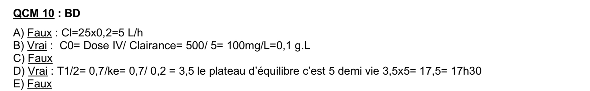 Pour cet item, il faut plutôt utiliser la formule du volume de distribution Vd = Dose / C0
