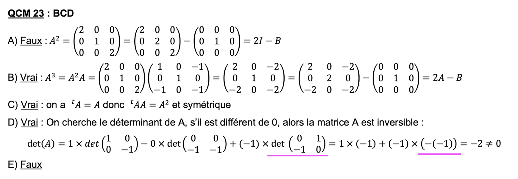j'ai fais (-1)x(-1) car 0x0-1x(-1) d'après la formule det(A)= ad-bc avec a & d = 0 , b=1 et c=-1