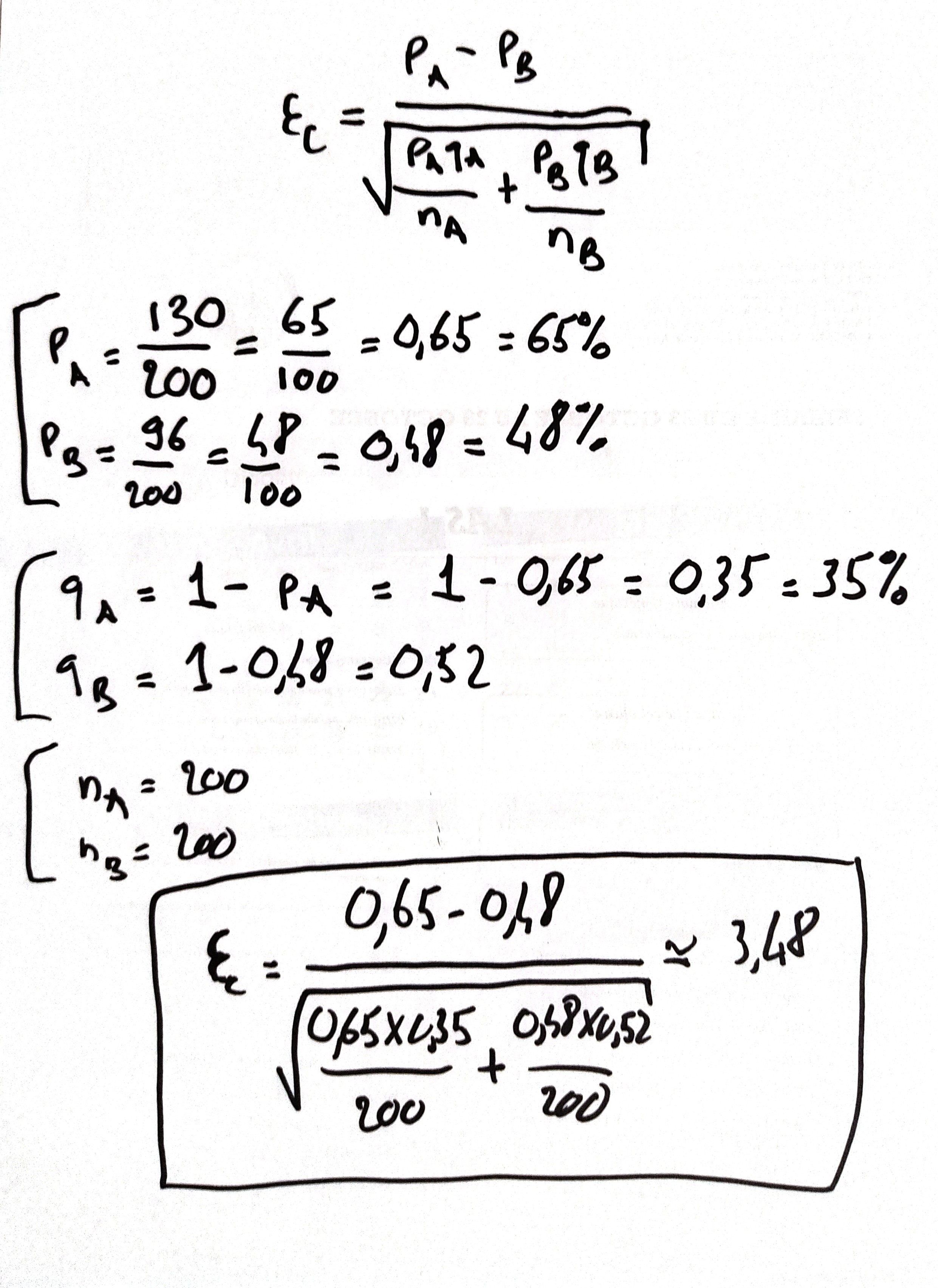 Dans la lecon je ne comprends pas comment, a la page 4 dans l exemple sur les taux d enfants ayant des rhinopharyngites a la creche ou a la maison, on trouve εc = 3,4. Je suppose que cet epsilon a ete calculé a l aide la formule ε c qu il y avait juste en haut. Ce pendant pour calculer Qb est ce qu il faut faire comme pour Qa c est a dire Qb=1-pB ? Sinon comment est on censés le trouver?
