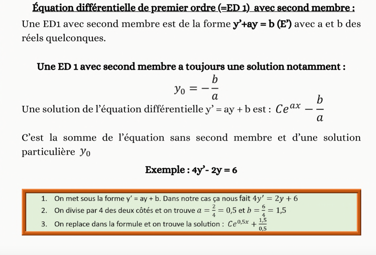 je me demande pourquoi dans l'exemple en pièce jointe sur la dernière ligne c'est pas Ce0,5x - (et pas +) 1,5/0,5 parce qu'ici a= 0,5 et pas -0,5 auquel cas ça pourrait être + ici