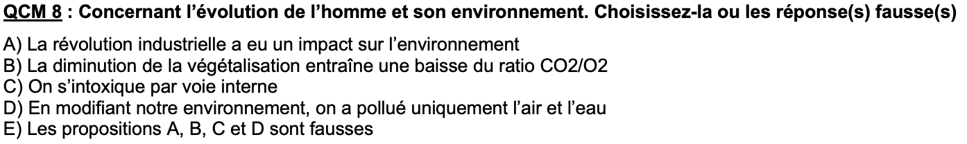 J'avais une petite question par rapport au QCM 8 du cours d'introduction à la santé et à la médecine environnementale.