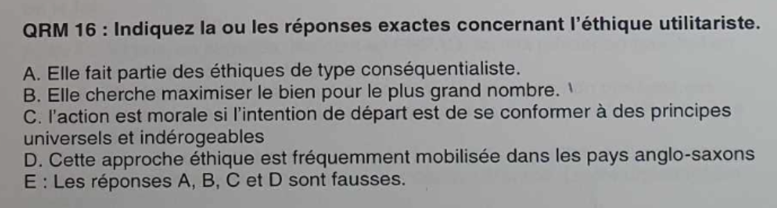 ANNALES 2023-24 QCM 16 : éthique utilitariste
