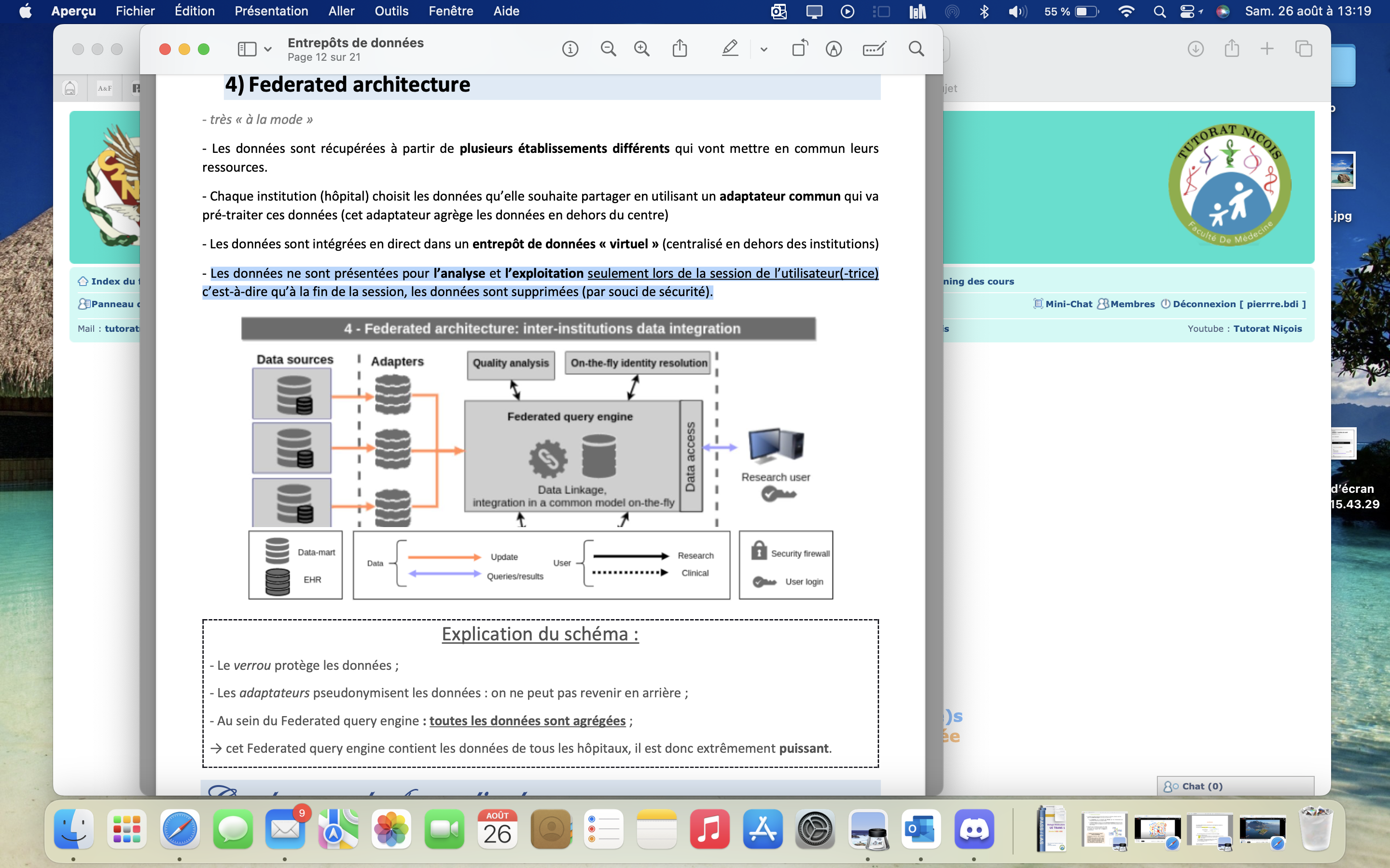 Alors le Federated architecture concerne des informations/données qui sont intégrées dans un entrepôt de données virtuel. Cet entrepôt est situé en dehors des institutions donc pour avoir accès à ces informations il faut s’identifier.
