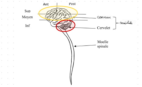 => Ce qu'il faut retenir c'est que que encéphale = Cerveau (étage sup et moyen) + TC - Cervelet (étage inf)