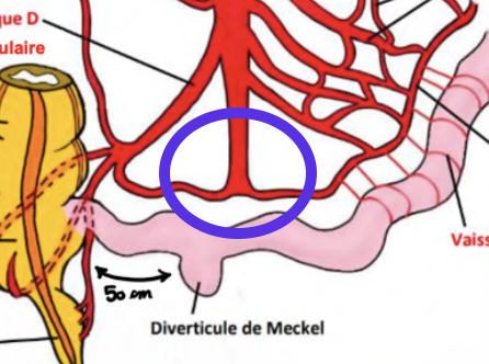 Le diverticule de Meckel est à 50-70cm de la fin de l’iléon (il est présent chez 10% des patients)