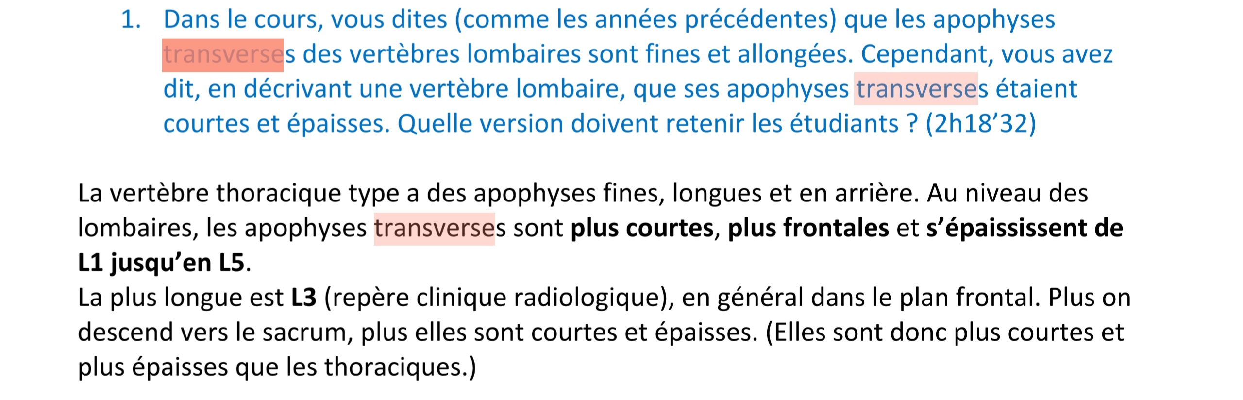 pas d'errata inversion. Les apophyses transverses lombaires sont effectivement