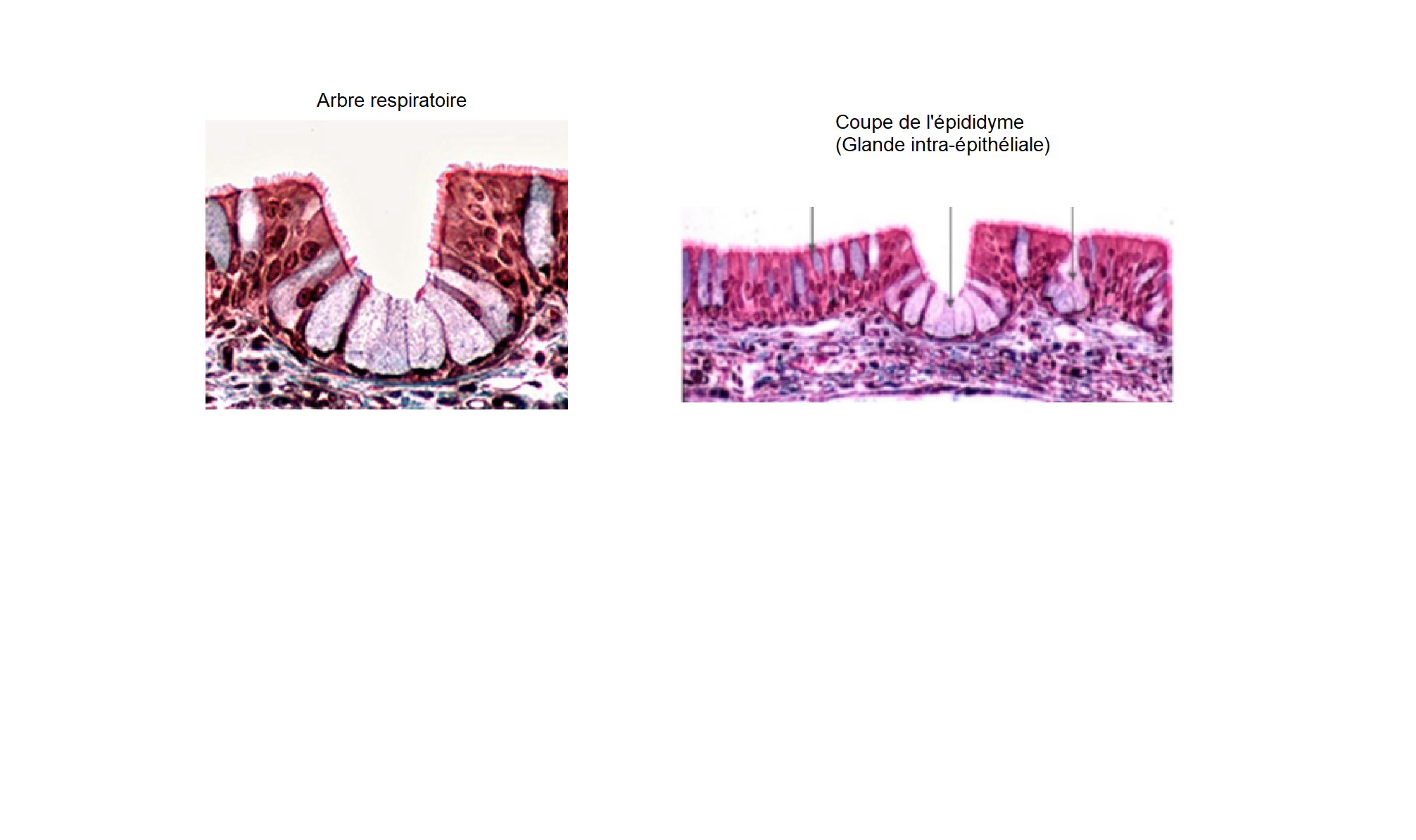 C'est un épithélium glandulaire car la coupe nous montre des glandes dites intra épithéliales. Elles sont regroupées en amas au sein de l'épithélium de revêtement. Ici, c'est une coupe d'épididyme et dans le cours on nous précise que c'est un