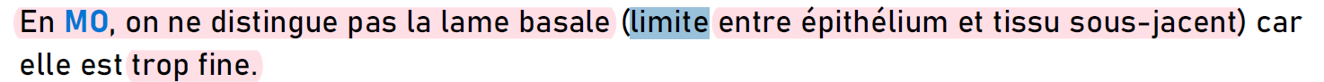 je comprend pas pourquoi cet item de l'annee derniere est compté juste " en microscopie optique on distingue en general clairement la limite entre l'epithelium et le tissu sous jacent mais en coloration standard on ne peut pas distinguer la lame basale" alors que dans le cour on dit que on ne peut pas distinguer en MO la lame basale qui est la limite entre epithelium et tissu sous jacent car elle est trop fine ?