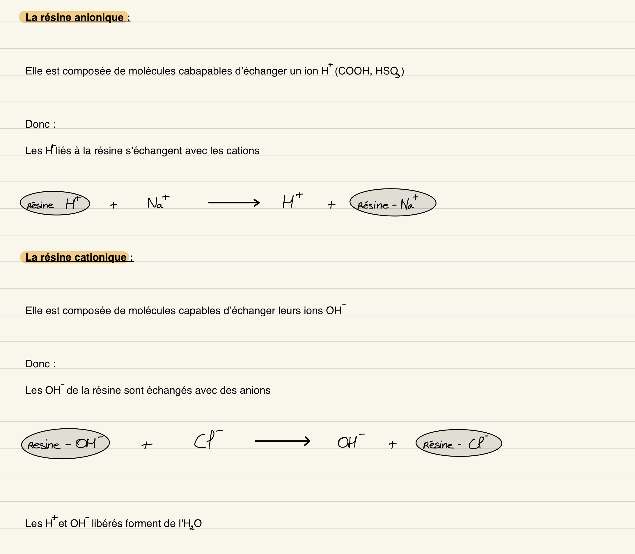 En effet, la résine anionique capte des cations via un échange de H+, mais pour moi ça permet bien l'élimination de cations vu que le but de la bi-permutation est justement d'éliminer le Ca2+ qui est un cation non ?