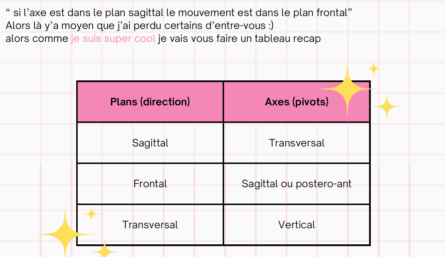 Ainsi on dit que l'axe est ton trait vert (l'axe du corps qui est donc sagittal) par rapport à ton mouvement qui lui est frontal