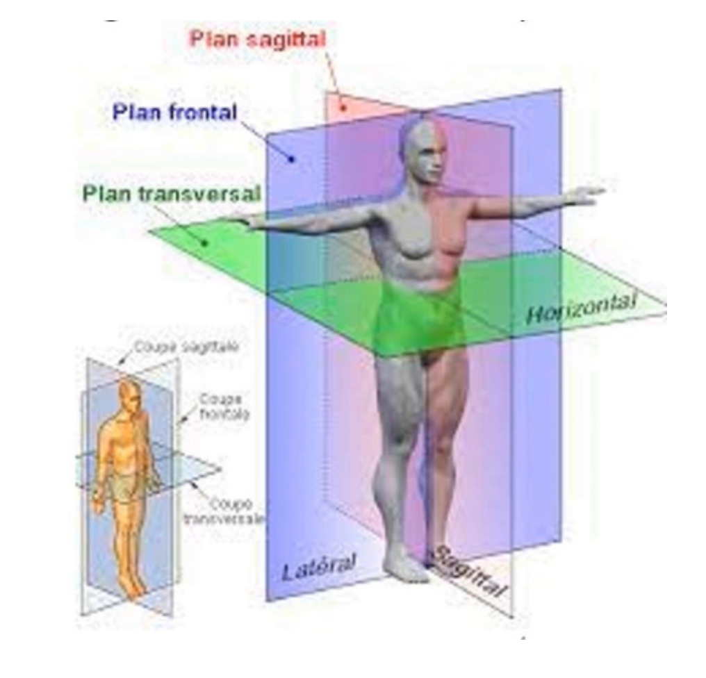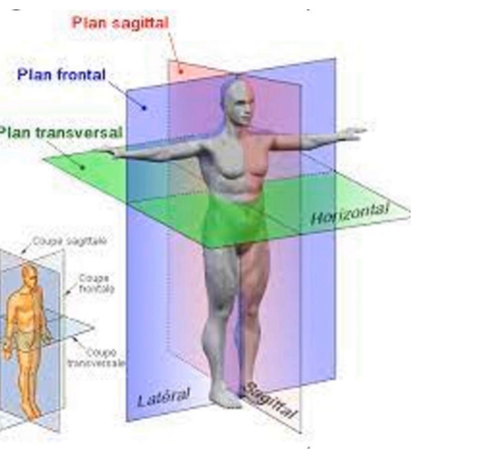 De ce fait on a un mouvement dans le plan sagittal car on envoie notre jambe en arrière du plan sagittal et un axe de pivot transversal car l'axe de la jambe tend à rejoindre le plan transversal