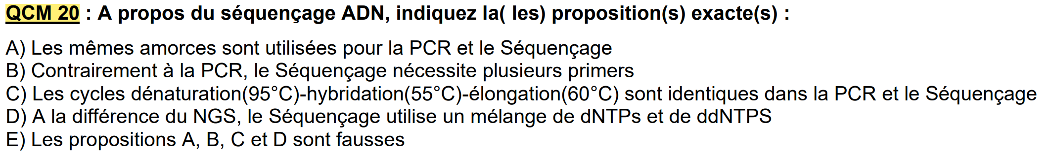 J'ai une question par rapport à ce QCM, l'item C est compté faux mais dans le cours s'est écrit que c'est le même jeu de température même si c'est vrai que l'élongation en séquençage a une température plus faible. Quel version retenir du coup ?
