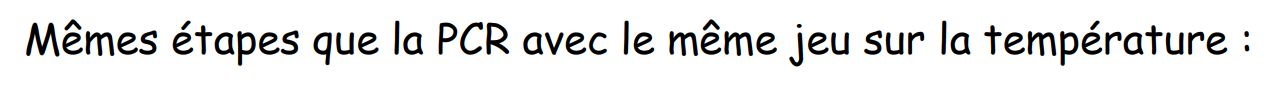 Il faut simplement retenir qu'on chauffe l'adn pour qu'il devienne simple brin ; qu'on baisse la température pour que les amorces/l'amorce puisse(nt) s'hybrider ; et qu'on réaugmente pour arriver à une température de fonctionnement de la taq polymérase (cette température dépendant de l'enzyme et pouvant donc bouger)