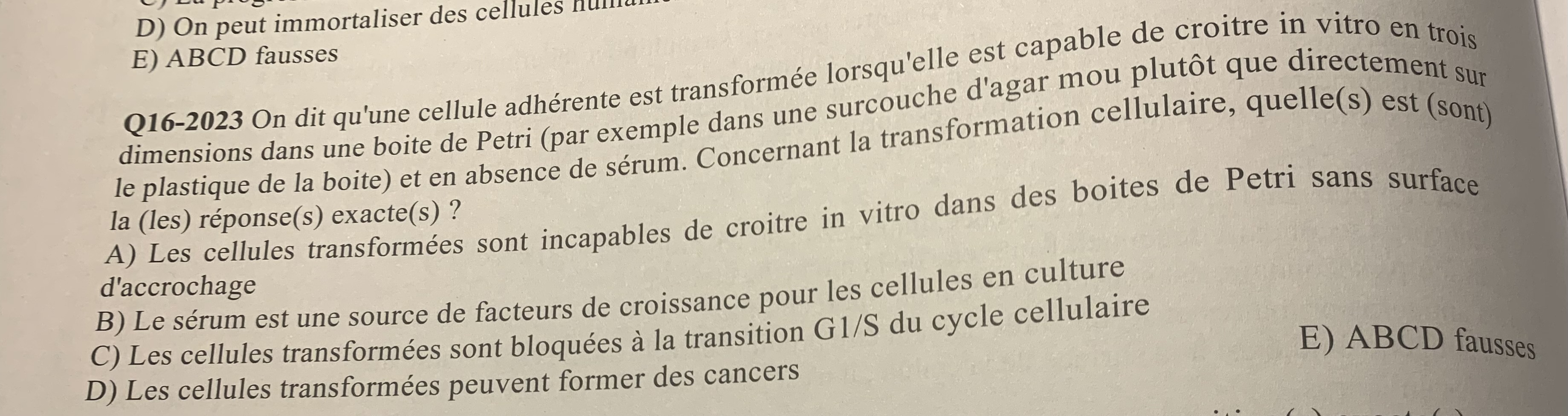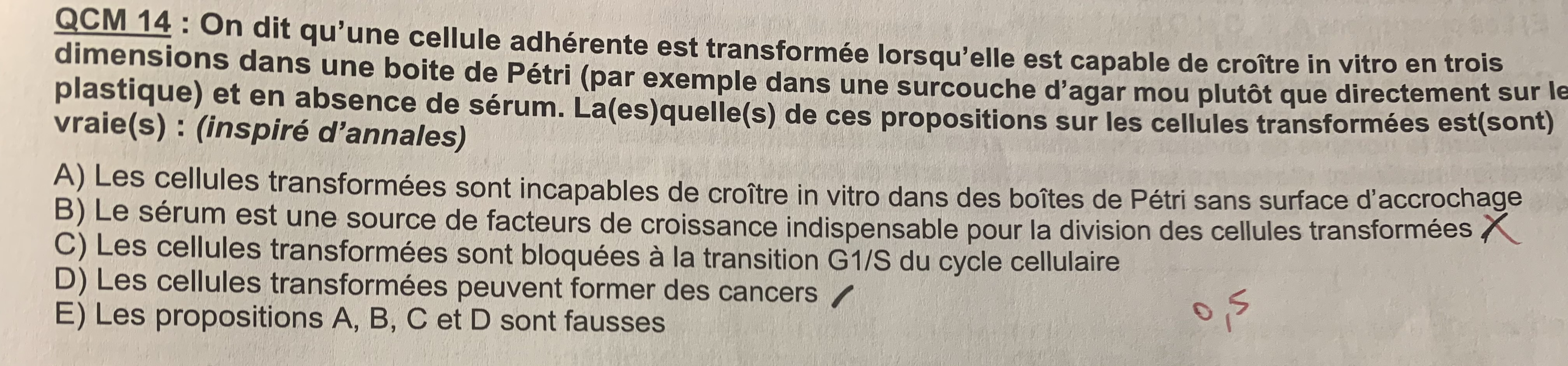 Salut, dans l’annathème le mot indispensable n’est pas présent alors qu’à l’EB si ! Il faut bien retenir que les cellules peuvent croître sans sérum ( écrit dans l’énoncé par ailleurs ) mais que celui-ci ( sérum ) n’est pas un facteur indispensable à la prolifération et division des cellules…
