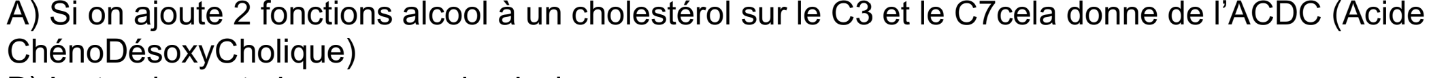cet item est compté juste mais je l'avais mit faux étant donné que pour donner l'ACDC, il ne suffit pas d'ajouter les OH mais aussi un COOH au bout de la ramification pour passer du cholestérol à l'acide biliaire. Est ce qu'on peut quand même compter cet item juste puisqu'il ne précise pas " uniquement par l'ajout de OH" ?