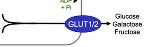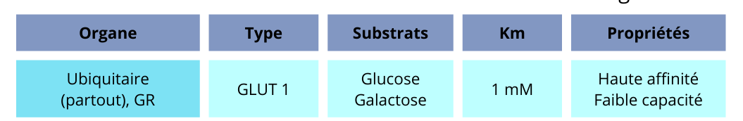 Dans le cours d'intro au métabolisme, sur le schémas de l'absorption des monosaccharides on voit que le transporteur GLUT 1/2 permet de faire passer le fructose/galactose/glucose vers la circulation sanguine, or dans le tableau en dessous qui montre les types de canaux GLUT en fonction des organes, il est écrit que le GLUT 1 (qui se trouve partout et dans les GR) ne transport que que le glucose et le galactose.