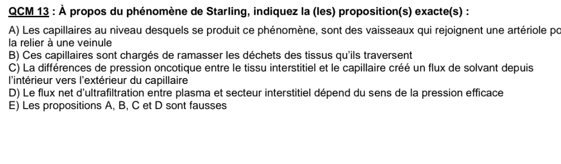 coucou !! je comprends pas en quoi l'item b est faux ? pourtant on sait que dans les capillaires standards on a un flu **nutritif** au niveau du pole arteriel qui vient alimenter les tissus, ça oui, mais on a aussi un flux **dépuratif** du tissu au capillaire au niveau du pole veineux ? donc on peut bien dire que les capillaires se chargent de récuperer les déchets aussi non ?
