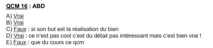 Les anciens tuteurs dans le co officieuse ont compté faux l'item C mais je comprend pas, je pense bien qu'il est juste comme les termes employés "universels" "indérogeable" concerne l'action MORALE de plus dans le cours (ronéo année dernière) sur la partie de l'éthique utilitaristes ça dit bien : "...l'intérêt du groupe dans la résolution des dilemmes MORAUX"
