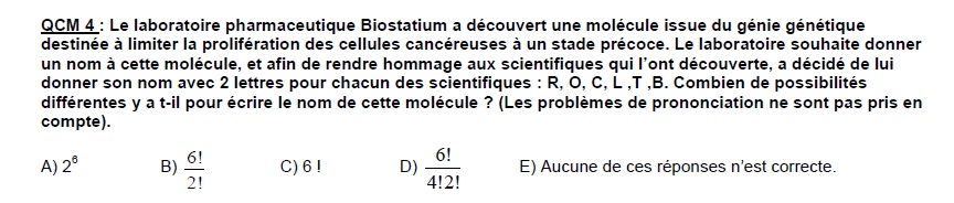 Dans la correction , la réponse juste est la C car on a utilisé cette formule : n!