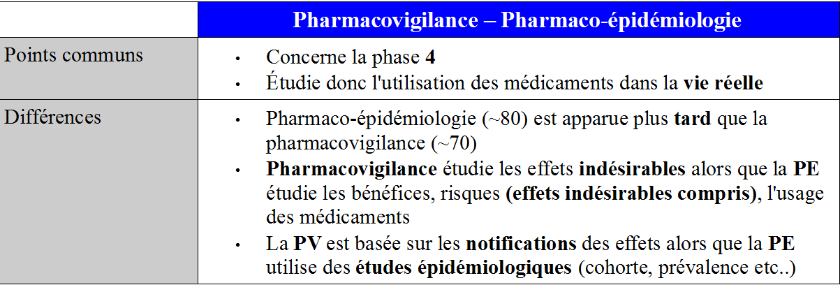 Ce serait possible d'avoir un petit topo sur les différences entre pharmacoépidémiologie et pharmacovigilance ? Parce que j'ai réalisé en faisant le (superbe) DM dessus que j'avais rien compris