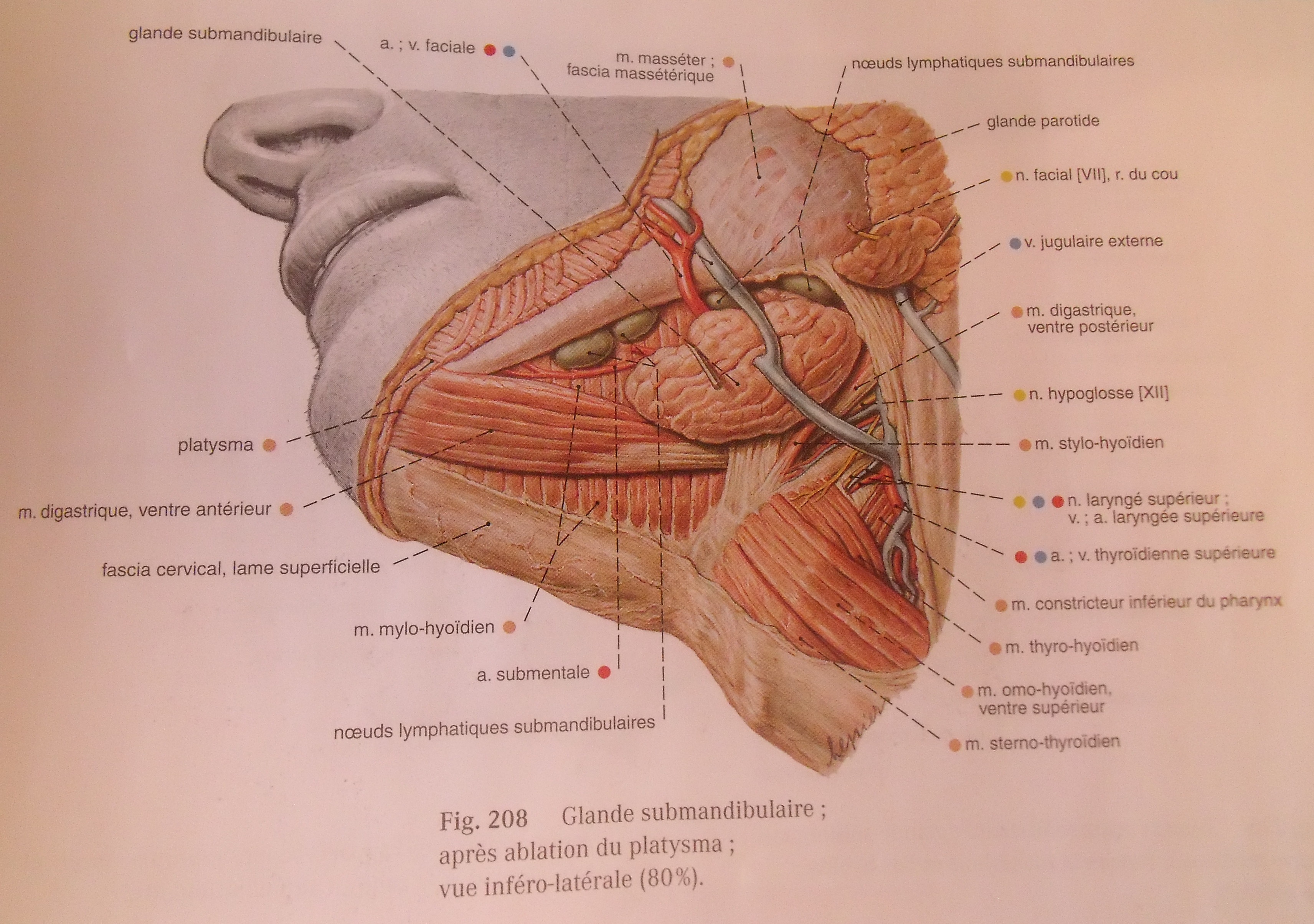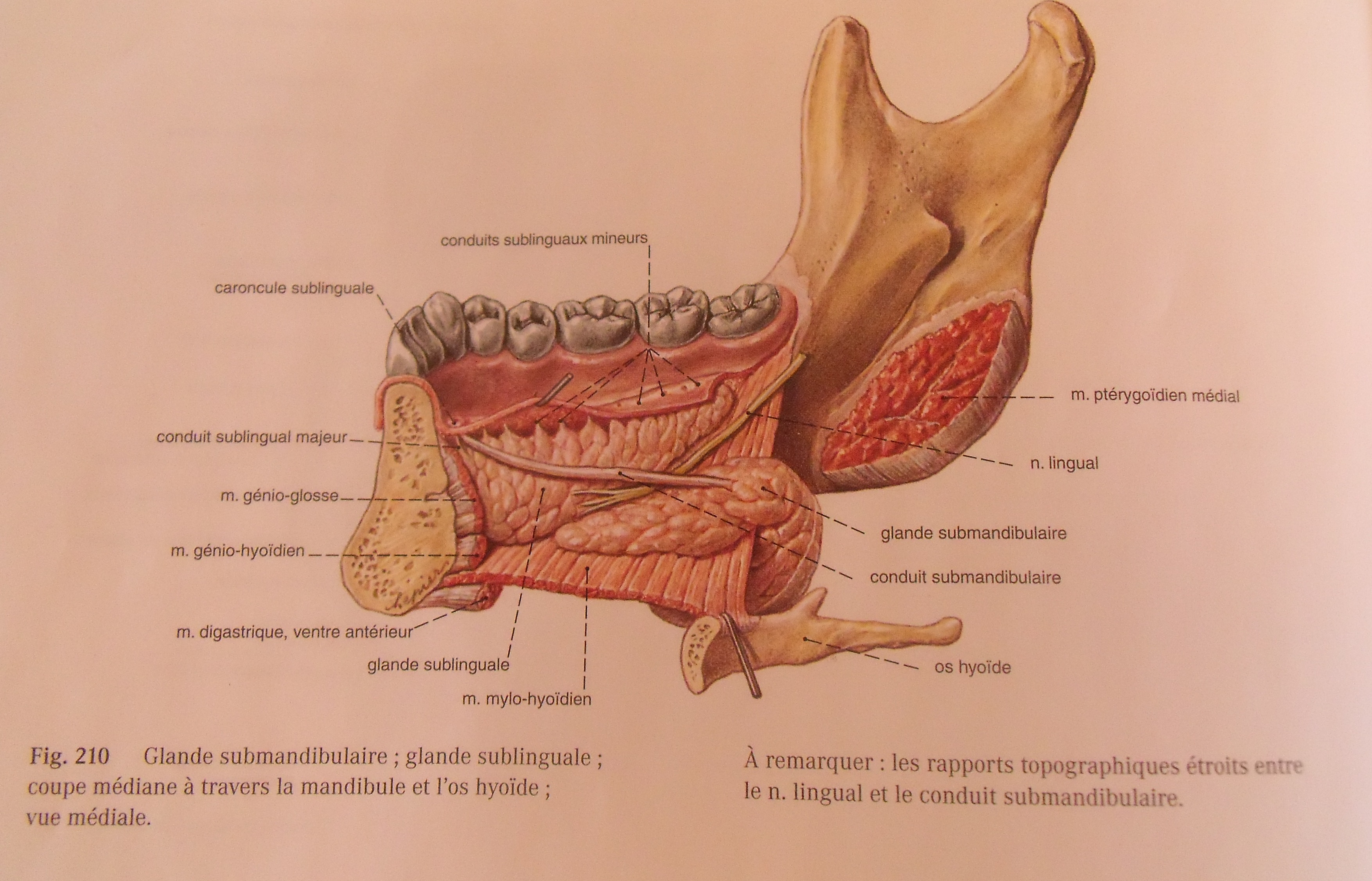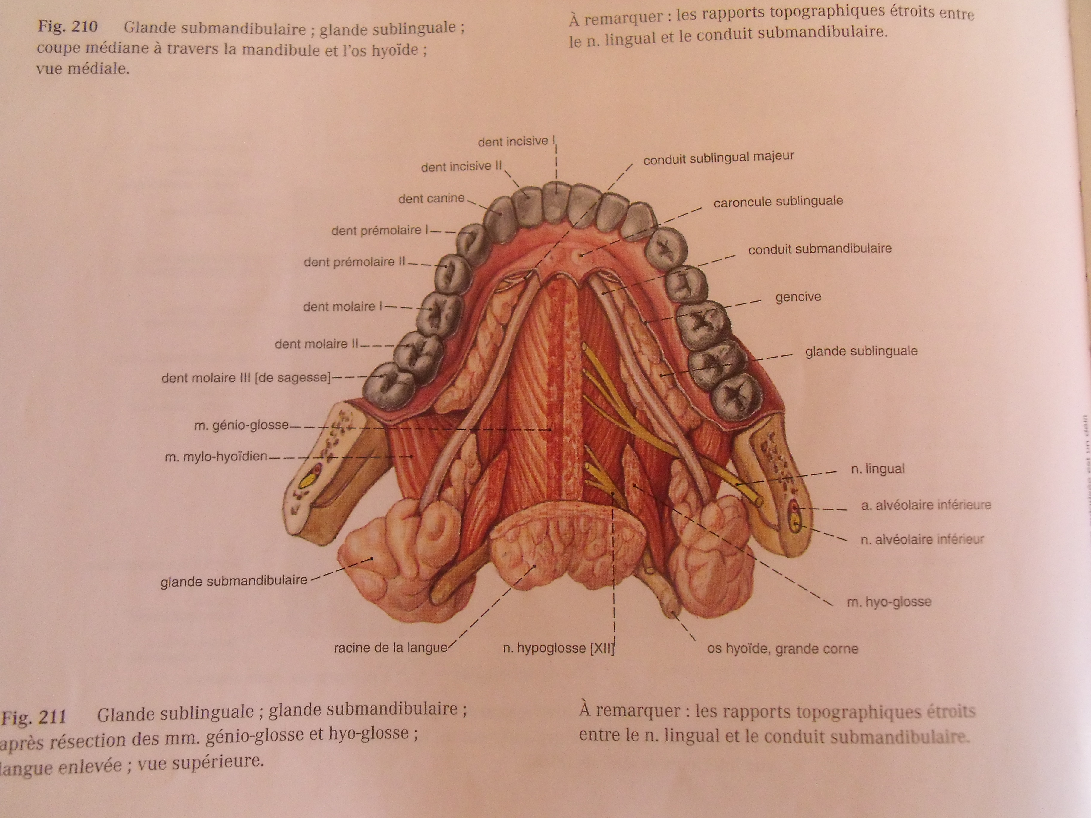 concernant la glande sous-mandibulaire on nous dit un coup qu'elle est en dehors du plan musculaire hyo-glosse et mylo-hyoidien puis 2 ligne en dessous on nous dit qu'elle est entre ces 2 muscles, que faut-il retenir?