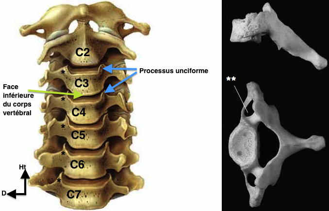 Petit soucis de compréhension avec les processus unciformes ou semi-lunaires, ont dit : la face supérieur présente dans sa partie supérieur et latéral des processus.