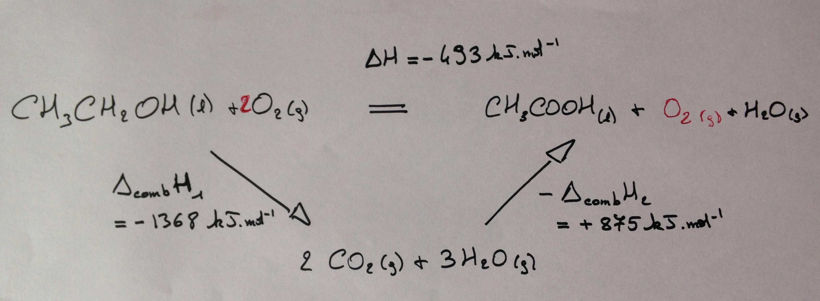 Calculer l'enthalpie de réaction de CH3CH2OH(l) + O2(g) = CH3COOH(l) + H2O(l)