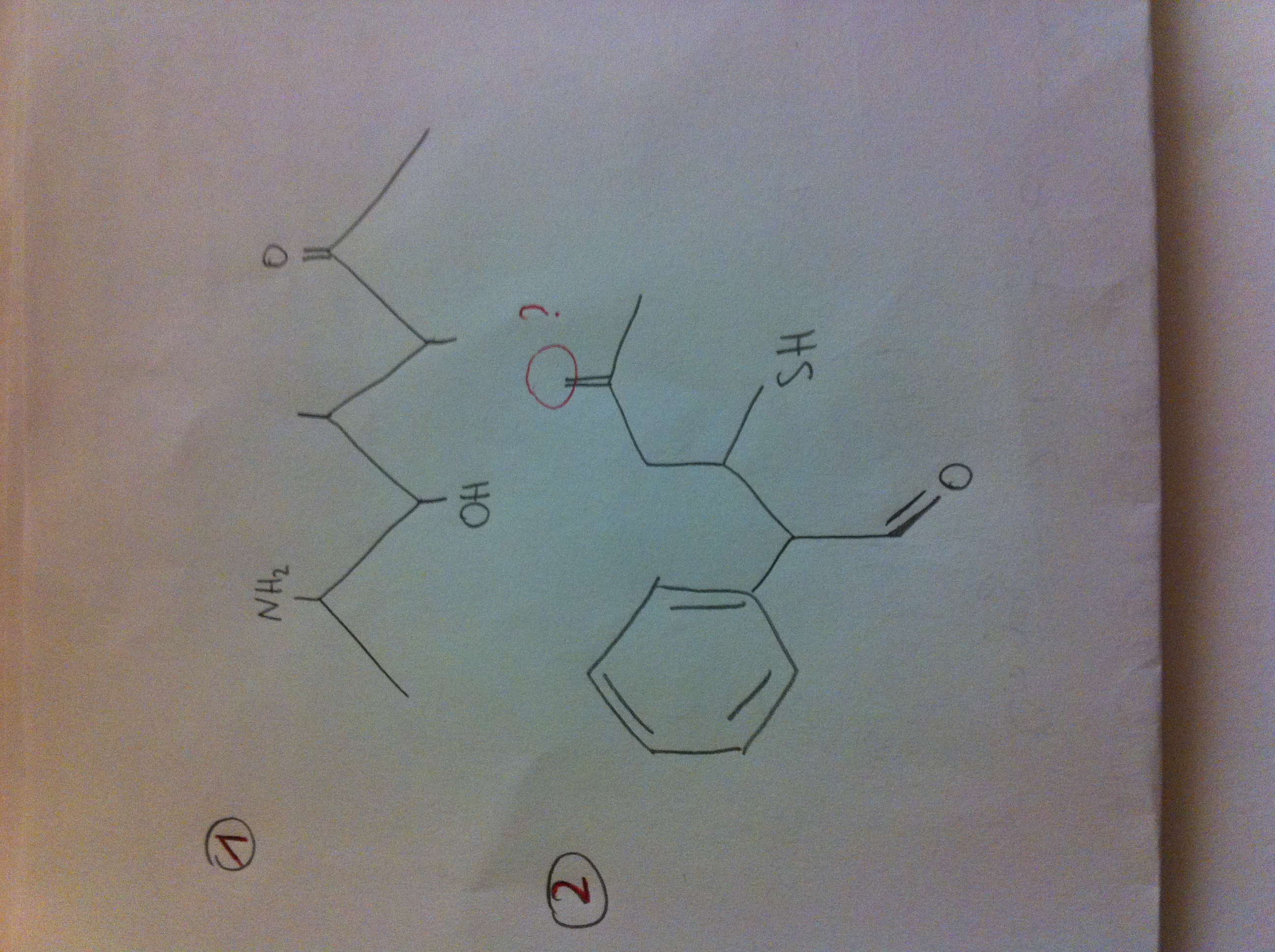 Dans la molécule 2, j'ai comme nom " 5-méthyl-2-phényl-3-sulfanylhex-5-ènal "