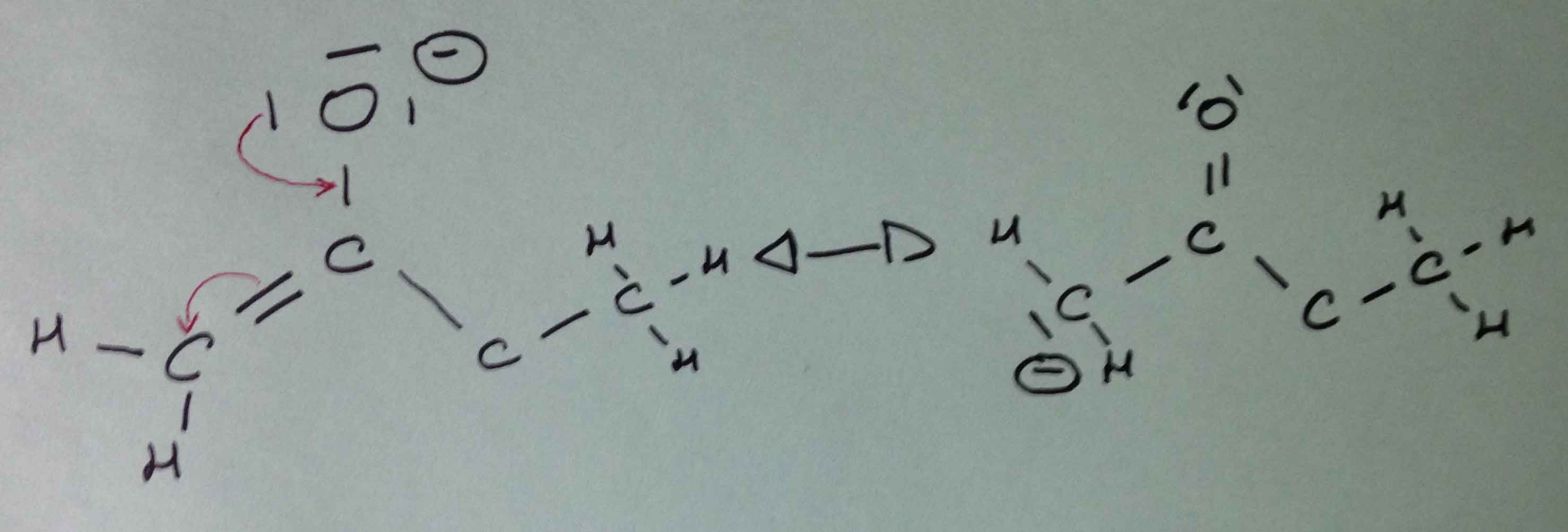 Pour l'alternance je suis d'accord mais je ne comprends pas pourquoi après la délocalisation le carbone de gauche possède une charge - sachant qu'il fait seulement 3 liaisons :confused: ne devrait-il pas plutôt avoir une charge + en tant que carbocation?