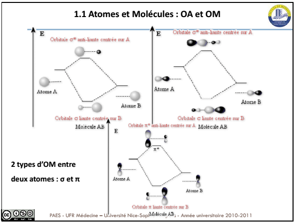 A partir de 2 OA tu as formation de 2 OM, une liante et l'autre anti-liante. C'est deux OM sont soit sigma, soit pi. Donc tu auras soit sigma liant et anti-liant, soit pi liant et anti-liant