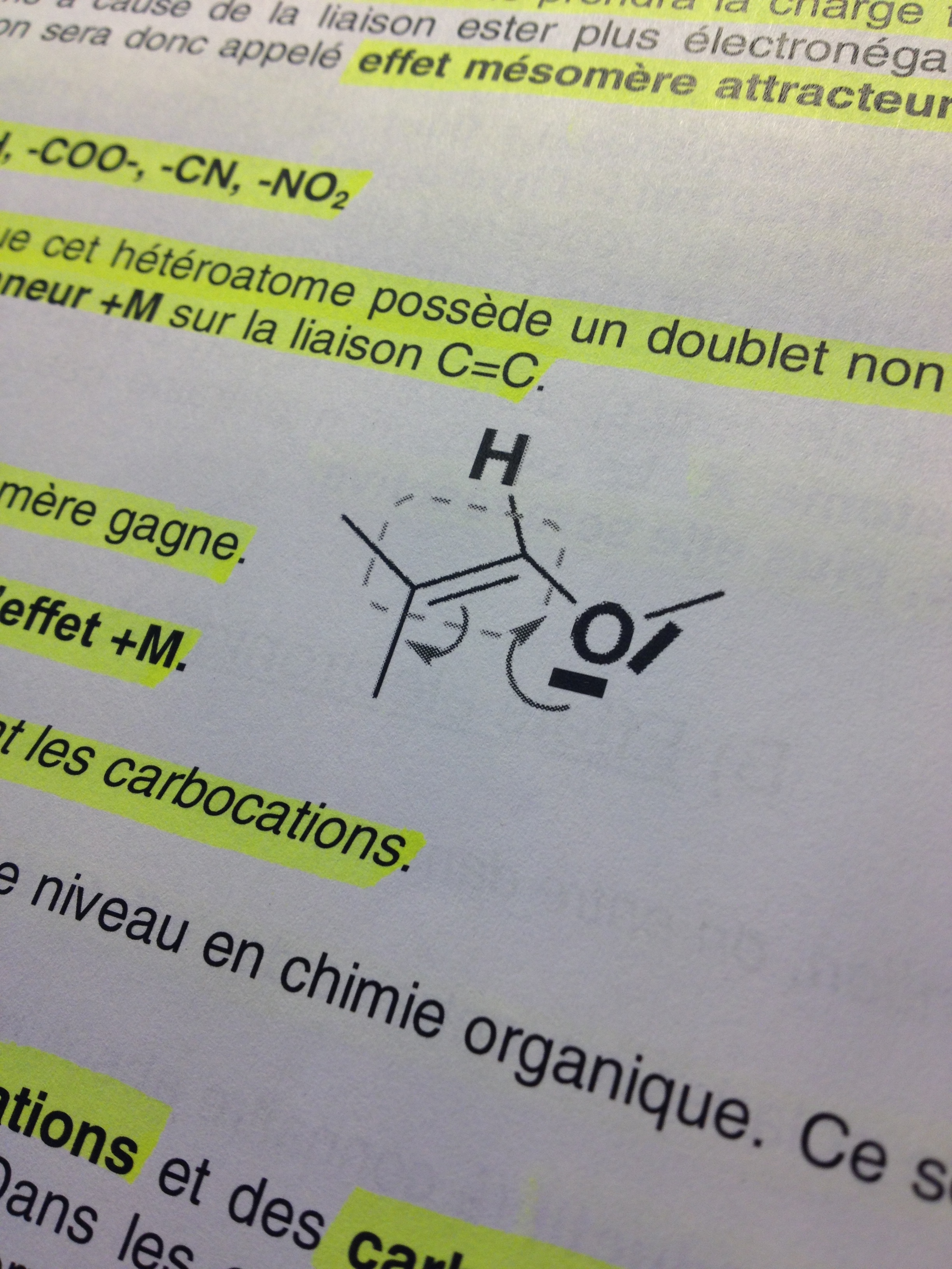 Sur cet exemple pourquoi l'effet mésomère est donneur ? On pourrait très bien considérer le système conjugué dans le sens Pi-Sigma-n ?