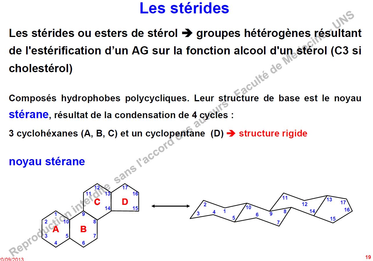 Après avoir lu la diapo 19 du poly, je me suis demandée si c'était le stéride ou le stérol qui sont hydrophobe: