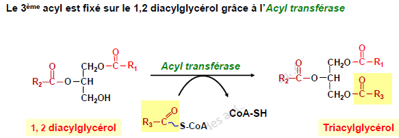 comme tu le verras au moment du cours sur l'anabolisme lipidique, pour synthétiser un TG, on fixe en général un AG en position 1, puis 2, puis 3 sur un glycérol 3-P.