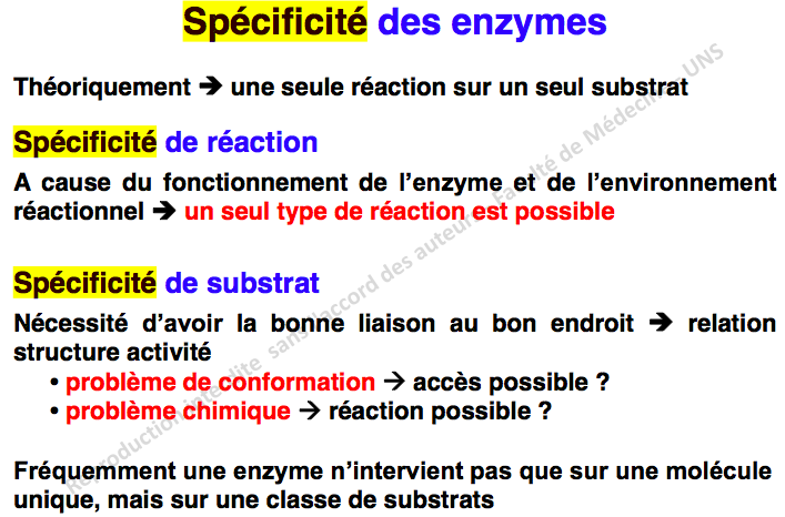 alors moi aussi j'ai mis cet item faux car pour moi si il y a un degré de complémentarité entre la structure du substrat et la structure de l'enzyme qui est responsable de la spécificité de la réaction alors ça voudrait dire que la spécificité de la réaction peut être plus ou moins étroite mais elle est absolue. Donc pour moi il n'y aurait pas de liaison entre le degré de complémentarité et la spécificité de la réaction il y aurait seulement une complémentarité pour une réaction. Je sais pas si j'arrive a me faire comprendre :pUtilisateurs parcourant ce forum: Aucun utilisateur enregistré et 4 invités