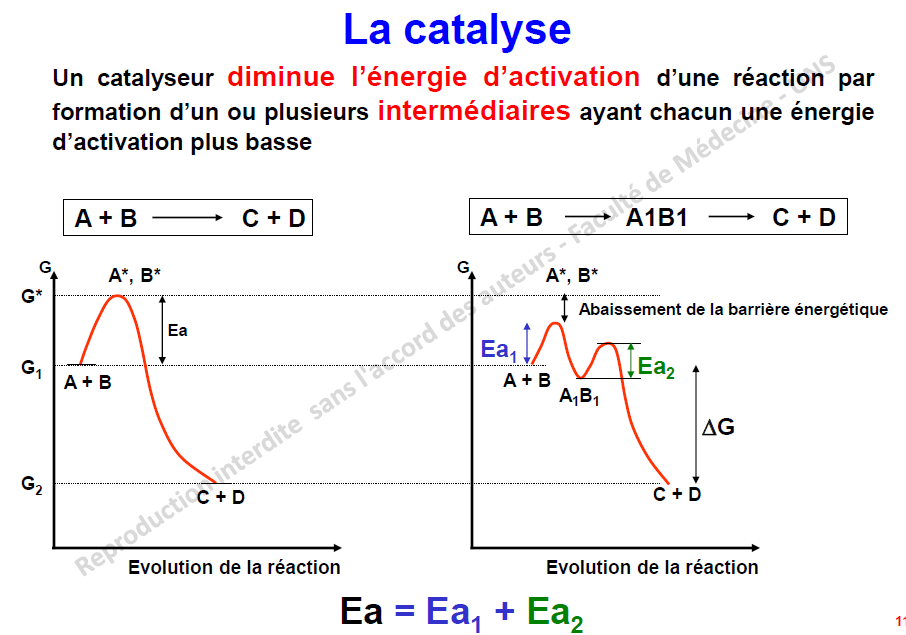 - un catalyseur permet d'avoir une énergie d'activation franchissable