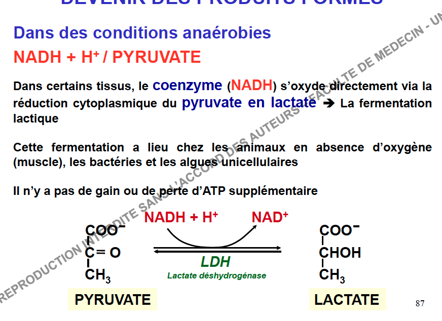 La lactate deshydrogènase est bien capable de transformer le pyruvate par rédcution en lactate ?