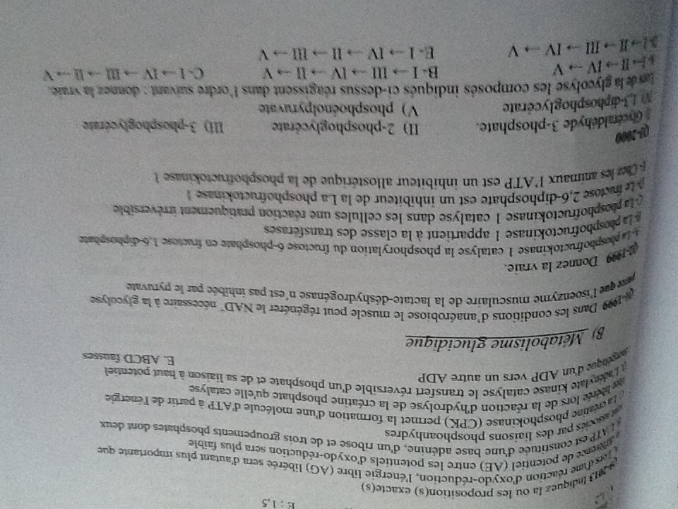 Bonjour, Je crois qu'il y a une erreur dans ce qcm. La correction dit que la reponse est la D mais normalement le F2,6bisP est activateur et non inhibiteur de la PK1, non?