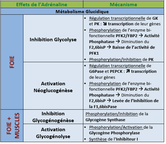 je vous mets un extrait de la fiche d'Alistairconcernant l'action de l'adrénaline sur le métabolisme glucidique parce qu'elle résume super bien les choses