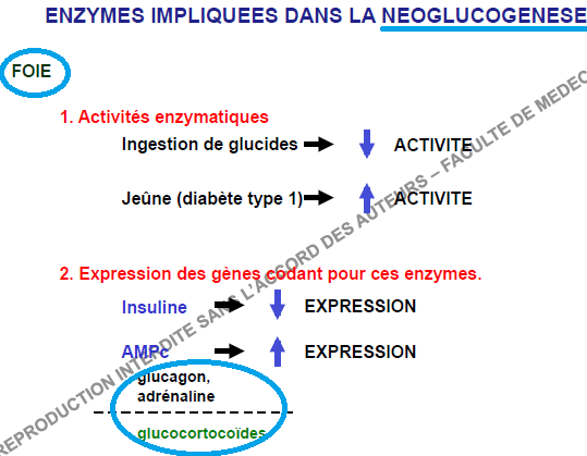 Attention, la présence d'adrénaline n'implique pas la régulation de la néoglucogénèse par cette hormone.