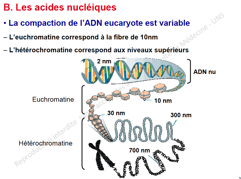 Euchromatine : 11 à 30 nm puis hétérochromatine >30nm