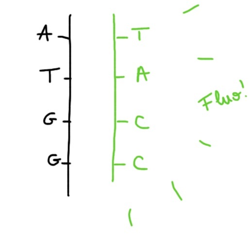 :arrow: Tu fabrique une sonde d'acide nucléiques COMPLÉMENTAIRE a la séquence que tu veux visualiser !!! :)