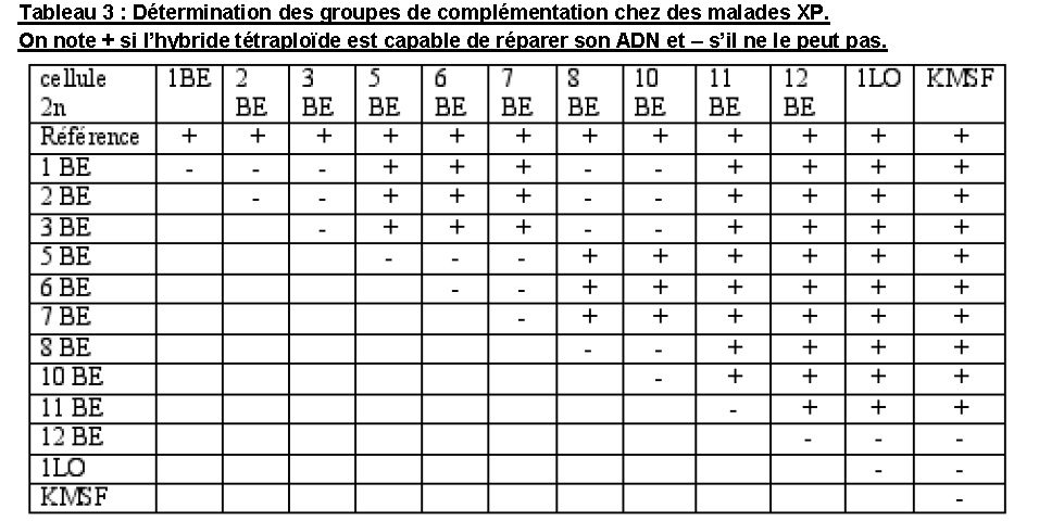- donc 11BE et 11BE appartiennent au même groupe de complémentation normal vu que c'est le même,