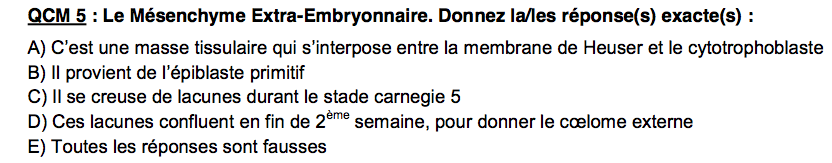 Dans ce QCM des annatuts l'item A est compté vrai, mais est-ce qu'il ne serait pas plus juste de dire "2nd poussée hypoblastique", car lorsque le MEE apparait carnégie 5, il n'y a plus la membrane de Heuser non ?