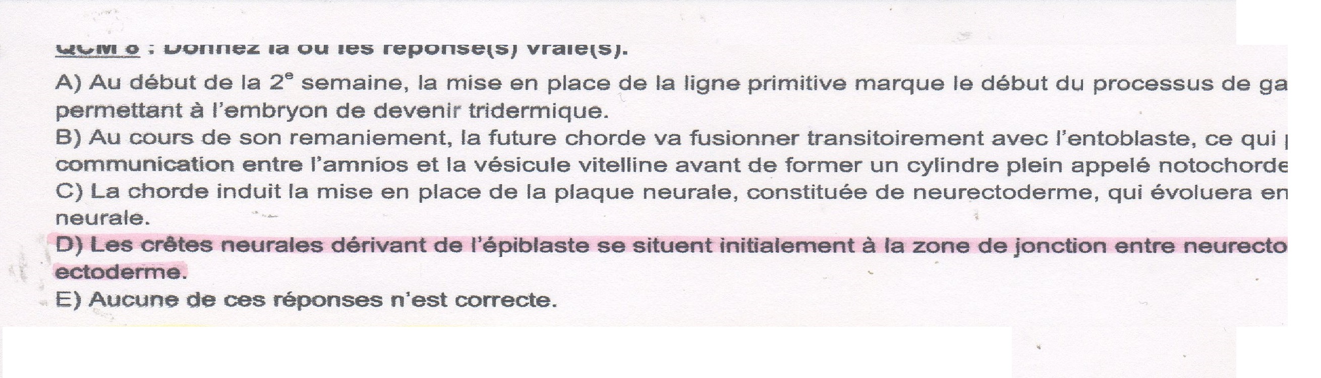 Si tu prends bien en compte la ronéo tu vois bien le schéma qui fait la distinction entre l'épiblaste II et neurectoderme .Donc l'item devait sans doute référence à l'épiblaste II ère . Dans tous les cas il aurait dût être compté faux ...