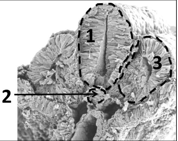 En dessous : endoderme, c'est le trou, mais j'ai du mal à voir les mésoblastes..