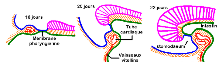 Et au moment de la délimitation de l'embryon et de la fermeture de la paroi ventrale, la zone cardiogène repoussée sur la face ventrale devient intra-embryonnaire (d'où la petite ambiguïté).