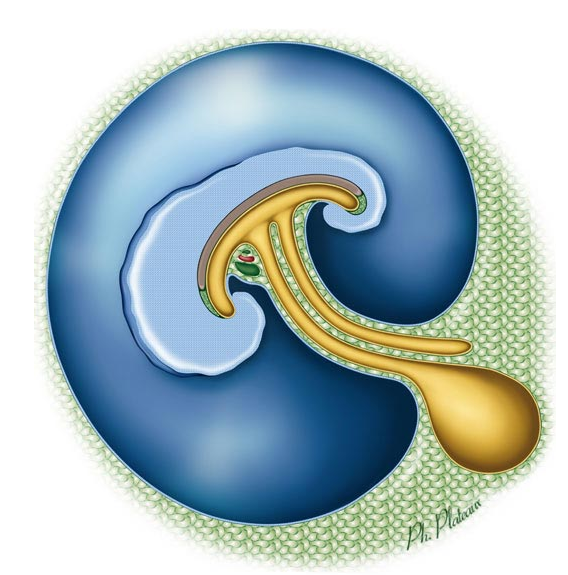 - pédicule embryonnaire accroché à l’embryon par la sphère choriale.
