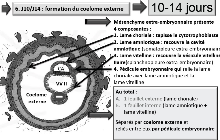 Le pédicule embryonnaire est entouré de la cavité choriale, peut on dire qu'il est également entouré du mesenchyme extra embryonnaire (puisque ce dernier contient la cavité choriale = lacunes du MEE)?