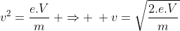 Avec : m = la masse de l'électron, V = la tension, e = la charge élémentaire, v = la vitesse