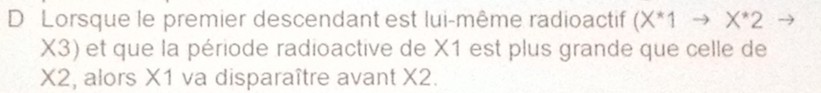 C'est un cas particulier (équilibre de régime) puisqu’on est dans la situation ou la constante radioactive du père est nettement inférieure à celle du fils. La probabilité de désintégration du père est inférieure à celle du fils. Autrement dit, la période radioactive du père T1 est plus longue que celle du fils, T2.